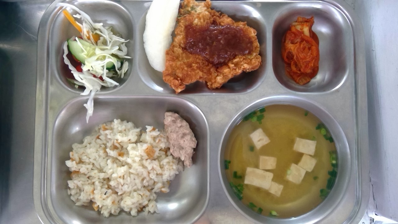 유부밥(1.2.5.6.9.13.16.18)미소된장국(5.6.9)참치마요(1.5.16.18)직접만든일식돈까스(1.2.5.6.10.12.13.18)김치볶음(9)배양배추샐러드)자율)(12.13)939.16/47.68/414.62/4.00