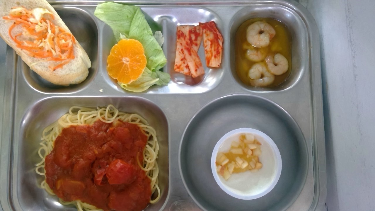 토마토스파게티(1.2.5.6.12.13)귤샐러드(1.2.5.6.13)감바스&바게트(2.5.6.9.13)배추김치(9)사과요거트(2.13)당근라페(자율)(1.5.6.13)750.12/27.25/240.14/3.24
