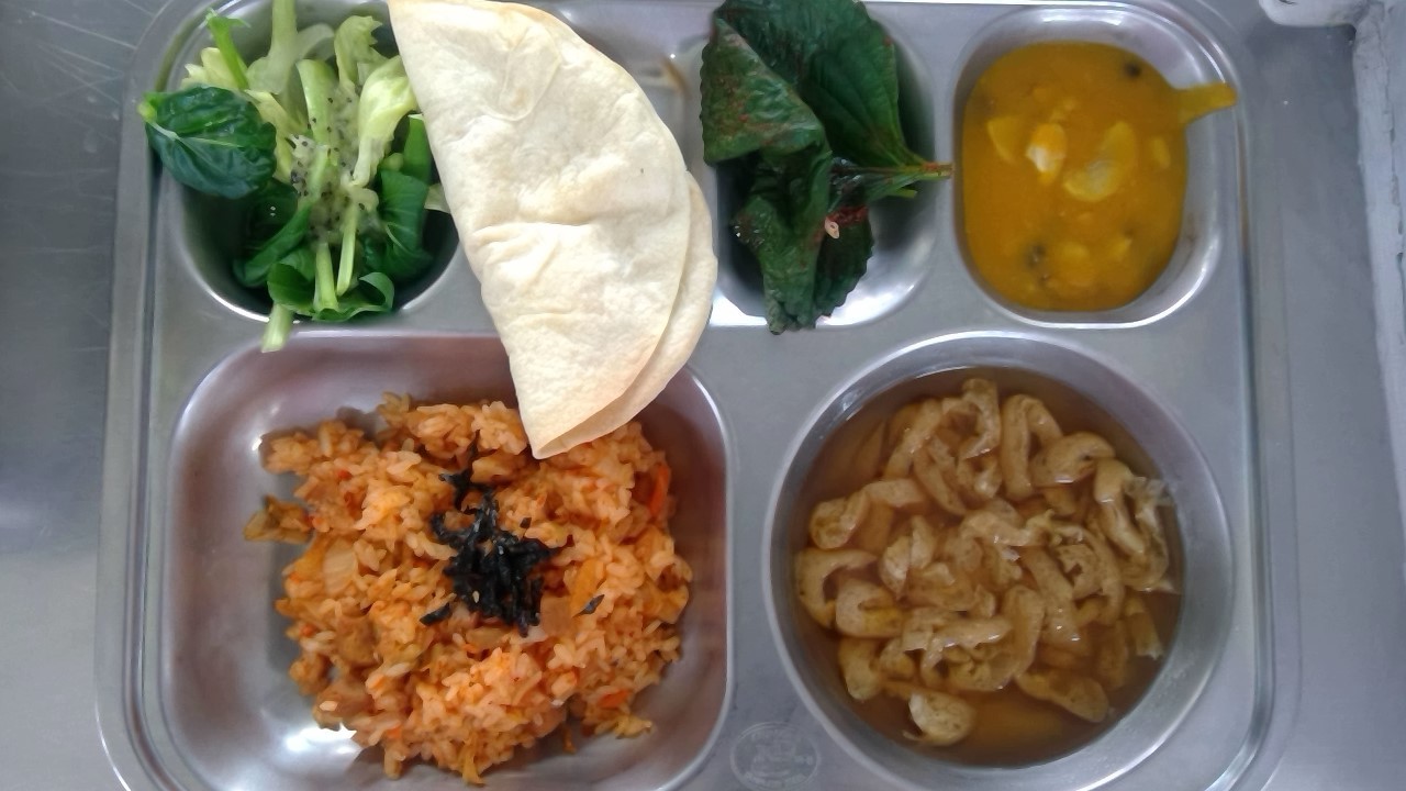 통스팸김치볶음밥(1.2.5.6.9.10.13.15.16)유부장국(5.6.7.18)깻잎지(5.6.13)감자치즈또띠아(1.2.5.6.13)저당요구르트(2)그린샐러드*(13)밤단호박죽(자율)(13)844.60/25.04/248.52/2.77