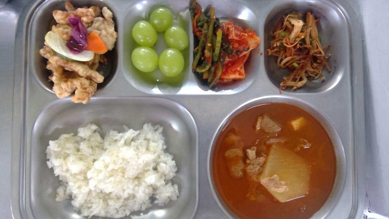 찰보리밥매콤오리탕(5.6)고추장팽이버섯구이(5.6.13)직접만든탕수육(1.5.6.10.11.12.13)배추김치(9)씨없는 포도열무젓갈무침(자율)(13)785.83/37.99/250.51/3.09