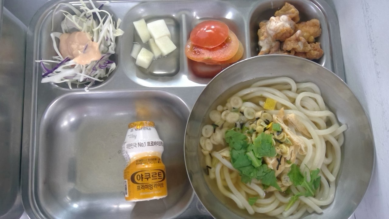 우동(1.2.5.6.9.13)양배추샐러드(1.5.12)치킨가라아게&아이올리소스(2.5.6.12.13.15)치킨무(13)저당요구르트(2)토마토(12)865.80/42.91/331.15/3.36