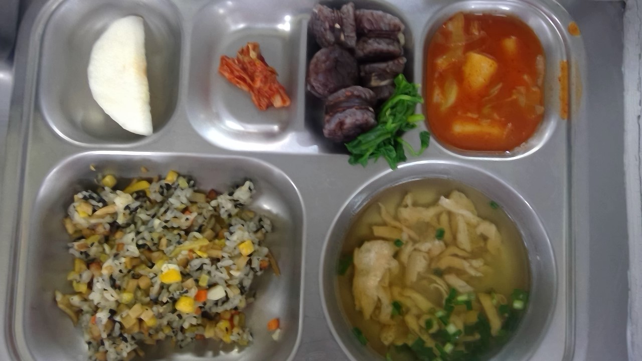 김밥볶음밥(1.2.5.6.10.15.16)유부장국(5.6.7.18)순대미나리찜&막장(2.5.6.10.13.14.16)가래옛날떡볶이(1.5.6.13)배추김치(9)배809.64/23.51/262.13/4.69